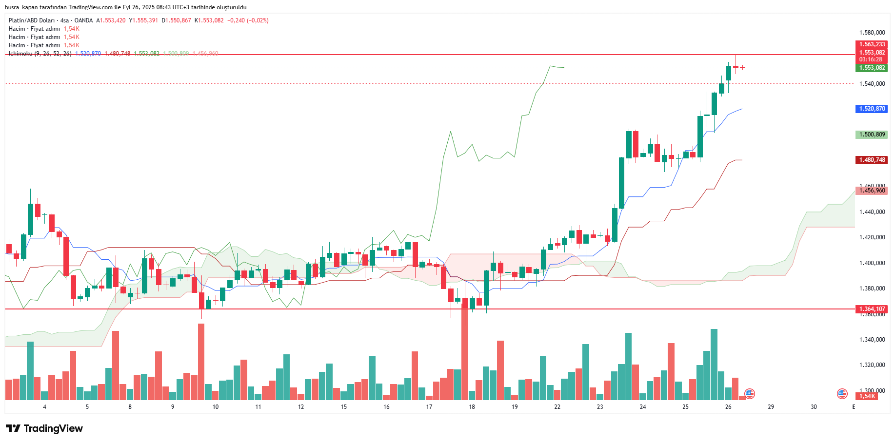 Yaşanan gelişmelerin etkisiyle platin haftanın son işlem gününde bin 563 dolarda bulunuyor.